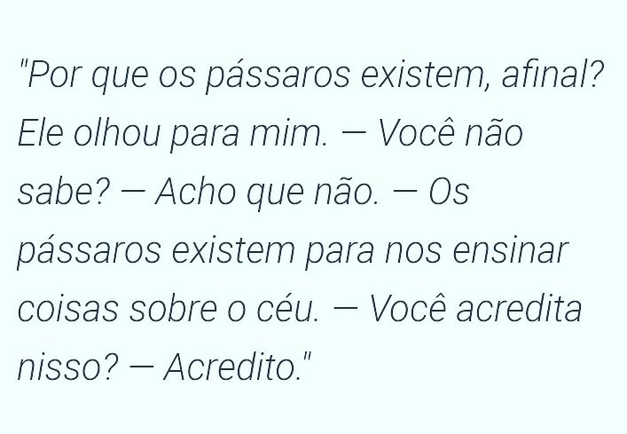 "Ele parecia tão feliz que cismei com isso, com sua capacidade de ser feliz. De onde vinha? Existia algum tipo de felicidade dentro de mim? Eu tinha medo dela?"